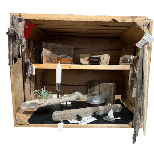 Produkte: Dekoartikel aus Treibgut: Teelichter, Kerzenständer, kleine Vasen, Kleiderhaken